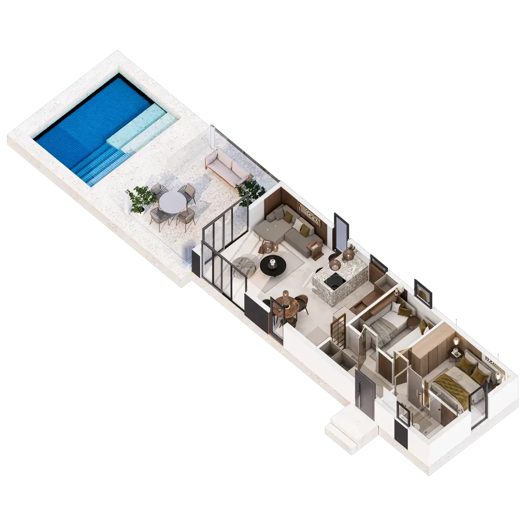 Inwestując w Resnik Resort, zyskujesz nie tylko luksusowe miejsce na wakacje, ale również wyjątkową nieruchomość, która może generować stały dochód. Dodatkowo masz nieograniczoną możliwość mieszkania w swoim własnym raju, ciesząc się luksusem na co dzień. Każdy detal, od prywatnych ogródków po tarasy z basenami, został zaprojektowany z myślą o maksymalnym komforcie i luksusie.